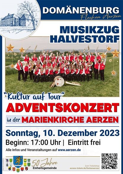 Unter dem Motto „Kultur auf Tour“ präsentiert der Flecken Aerzen auch in diesem Jahr das Adventskonzert mit dem Musikzug Halvestorf