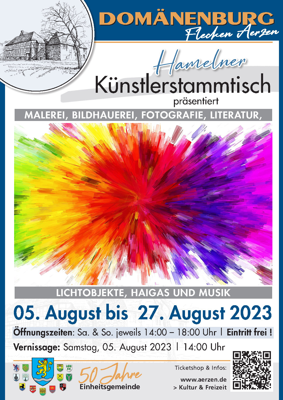 Die Domänenburg im Flecken Aerzen wird vom 05. August bis 27. August 2023 zum Domizil für den Hamelner Künstlerstammtisch.