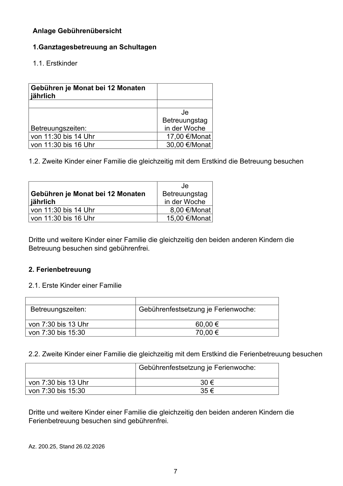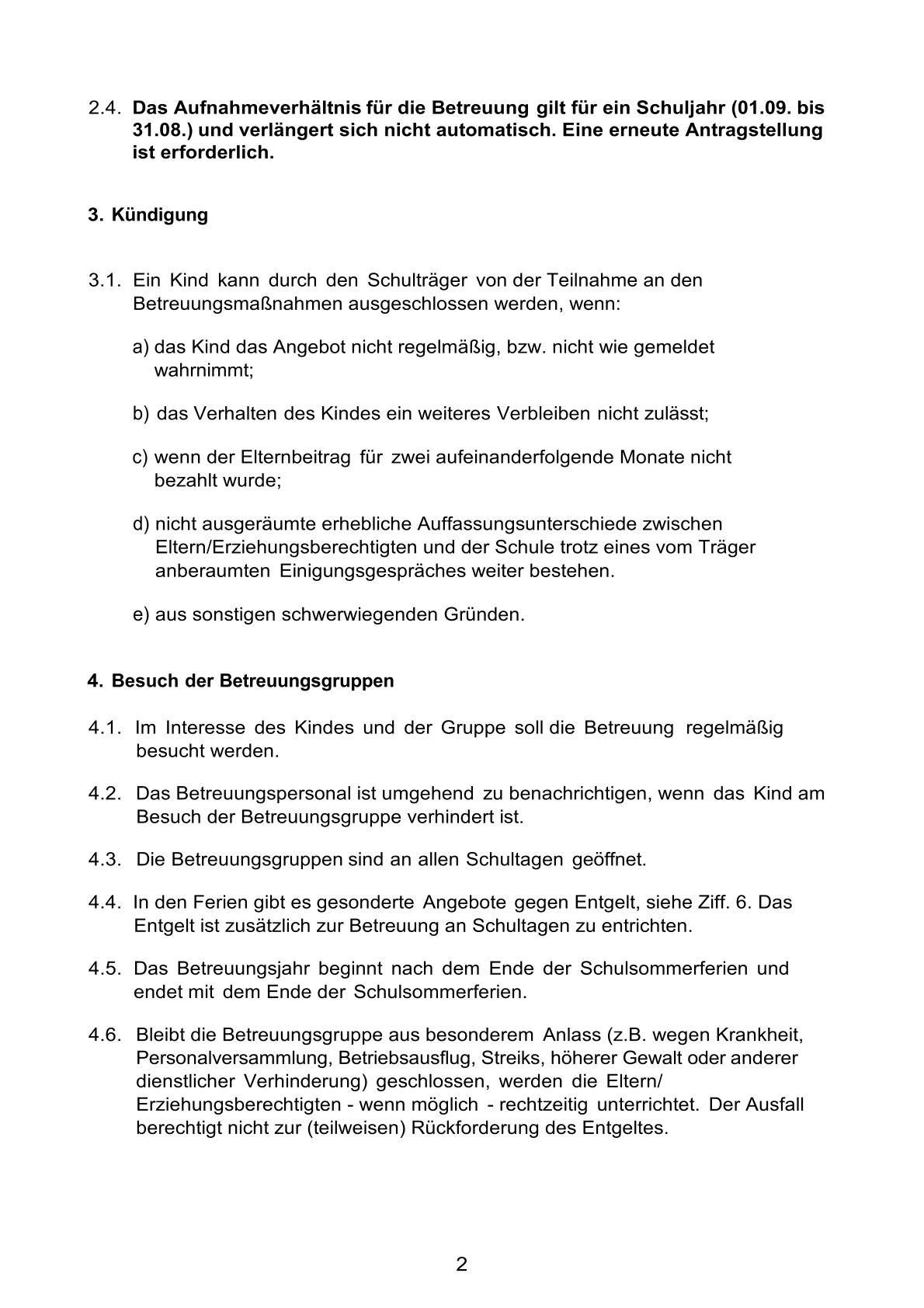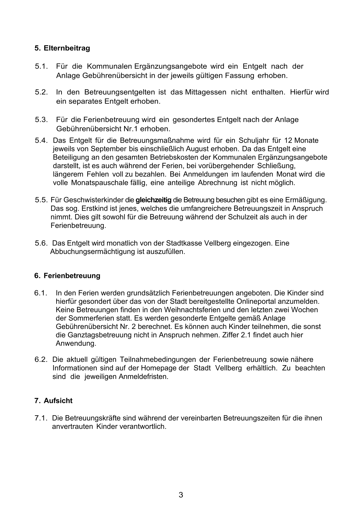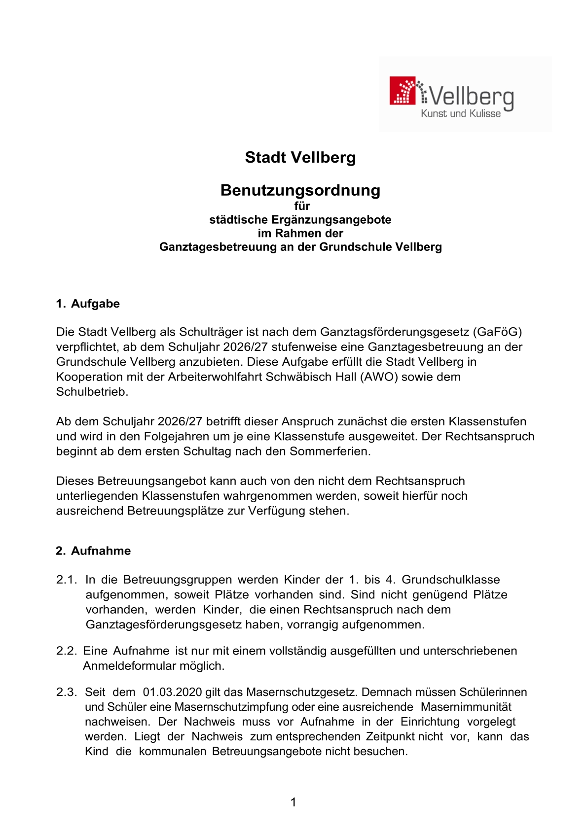 Benutzungsordnung für städtische Ergänzungsangebote im Rahmen der Ganztagesbetreuung